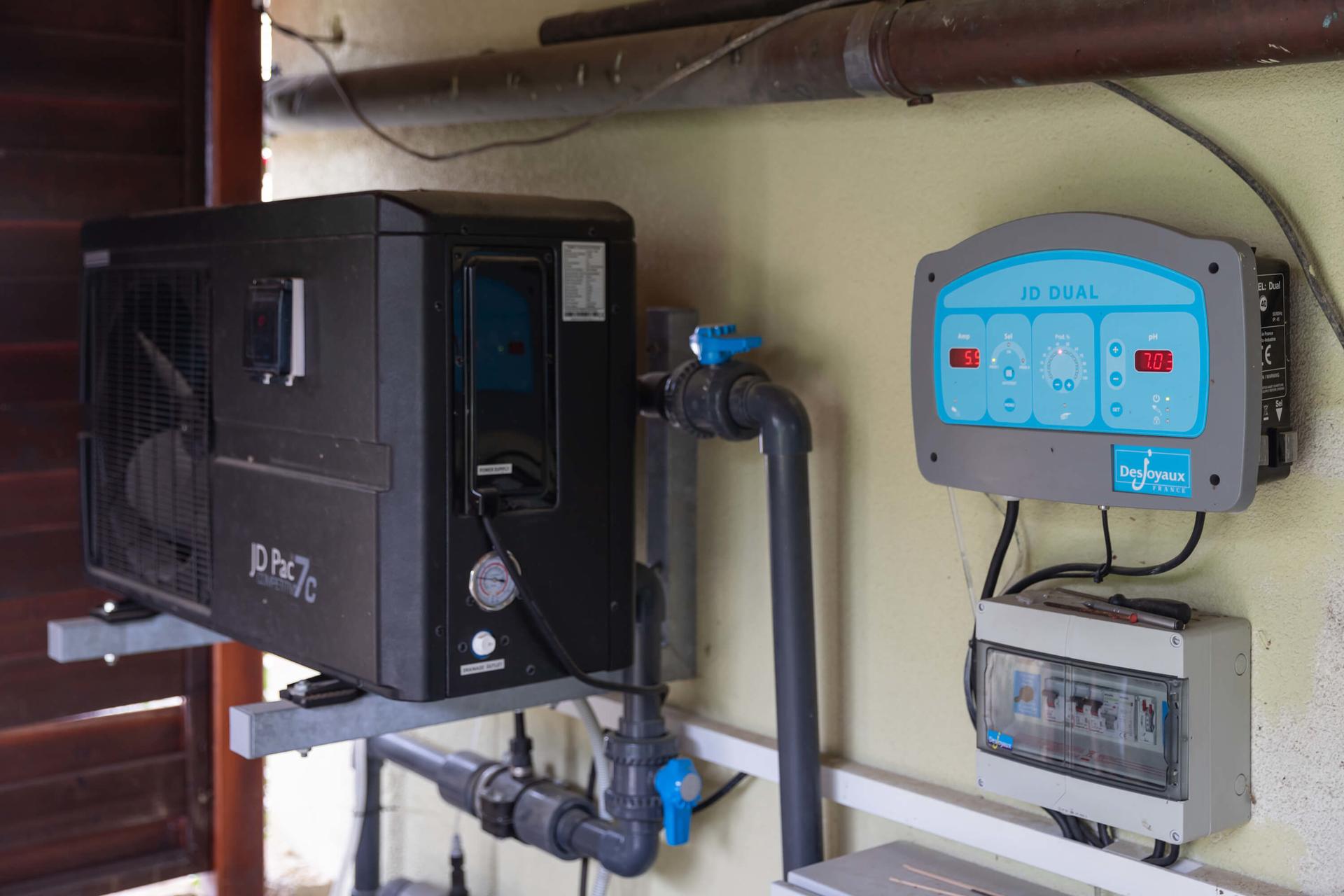 Bazén s linerem v tmavě modré barvě a rohovými schody s protiskluzovým materiálem je čištěn pomocí slané vody. pH je hlídáno automaticky – podle získaných informací o stavu vody je systémem samostatně dávkovaná kyselina, která ho udržuje v žádaném rozmezí. Údržba bazénu je tedy zcela nenáročná.
