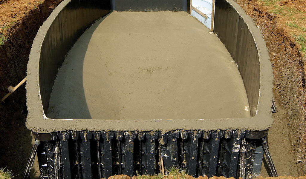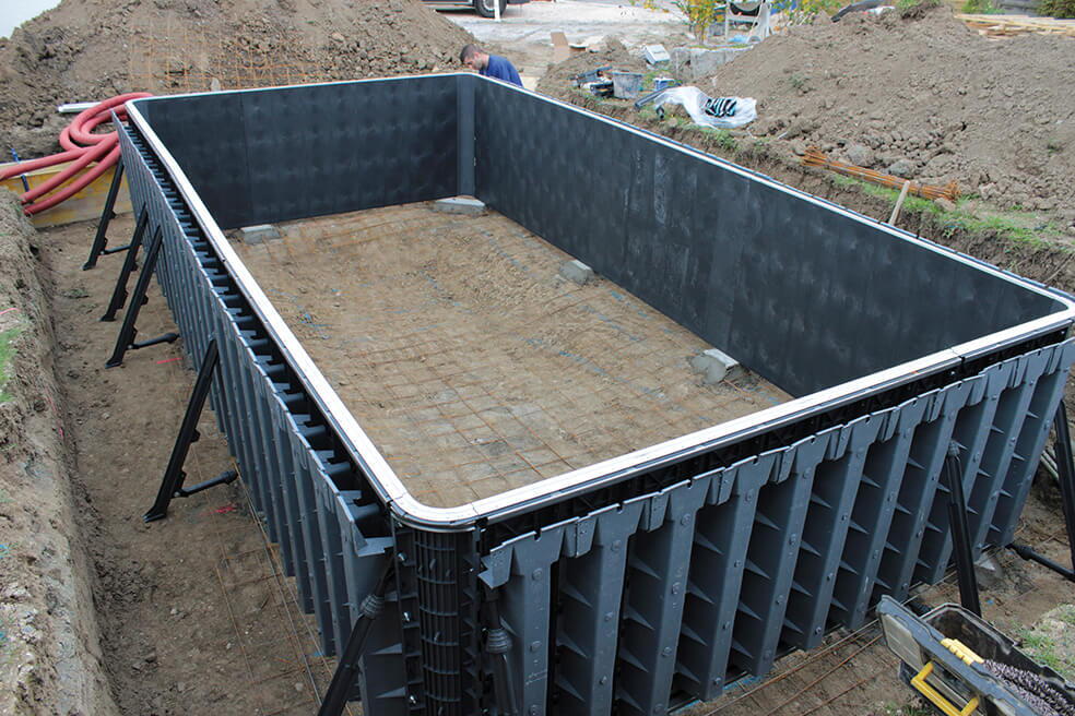 Jedná se o promyšlený stavební systém, který využívá speciální polypropylenové tvárnice. Ty se skládají do požadovaného tvaru bazénu a následně se zalévají betonem.